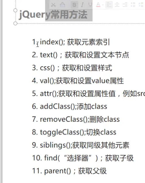 总结:筛选选择器的功能与过滤选择器有点类似,但是用法不一样,筛选选择器主要是方法。
